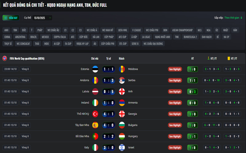 Cập nhật kết quả bóng đá đầy đủ nhất